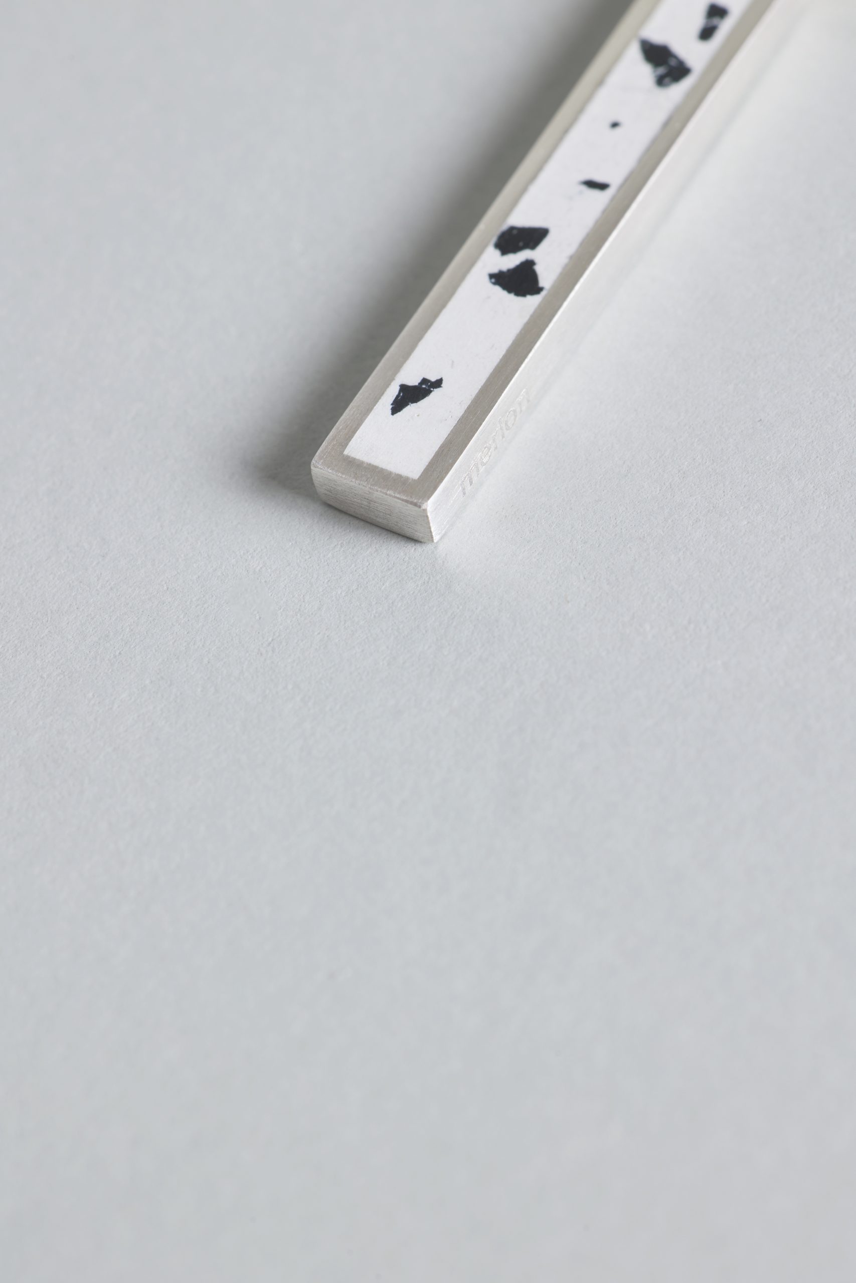 Lintour draws inspiration from the vertical presence of architectural forms. Its narrow concrete body is held within a precise silver frame, creating a clear sense of balance and structure.